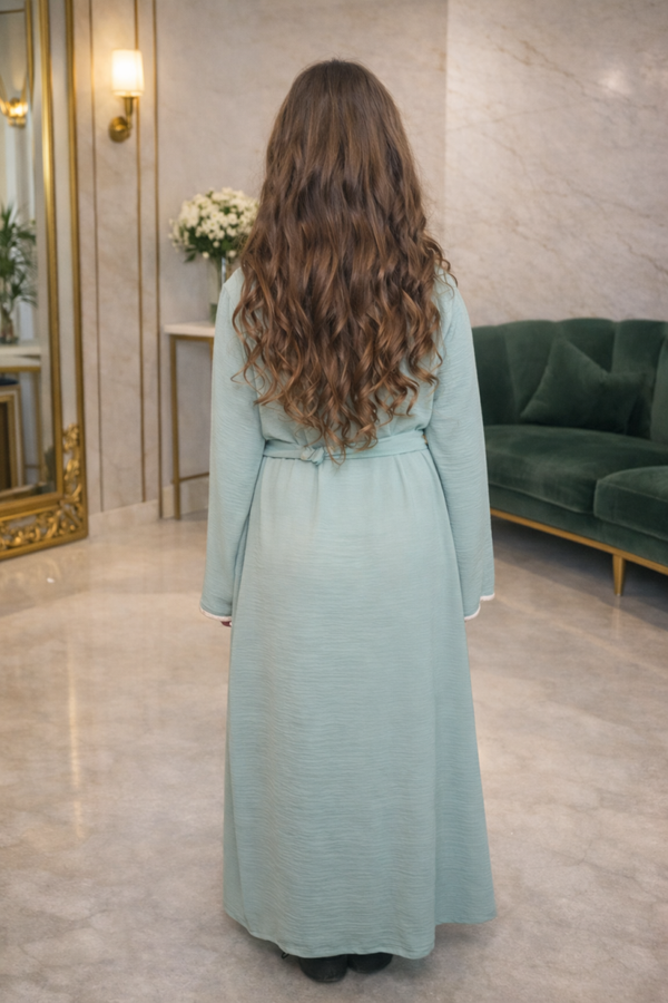 Sublime robe longue avec finitions contrastées, coupe fluide et confortable 🌿